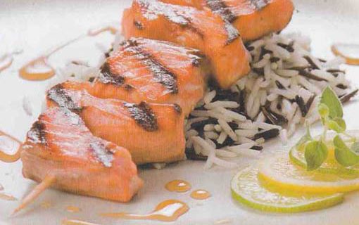 Для шашлыка потребуется: на б порций • филе лосося 700 г • соус соевый 3 ст. ложки • мед Зет.ложки • перец чили 1/2 шт.